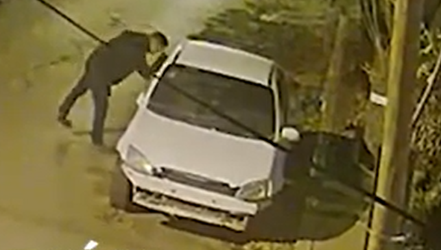 En las imágenes de las cámaras de videovigilancia se puede observar a dos jóvenes caminando por la vereda y a un tercero, por la calle. Segundos después, uno de ellos se dirige hacia vehículos estacionados y observa el interior de algunos en una actitud sospechosa. Sin concretar ninguna acción, continúa caminando junto a los otros dos jóvenes.