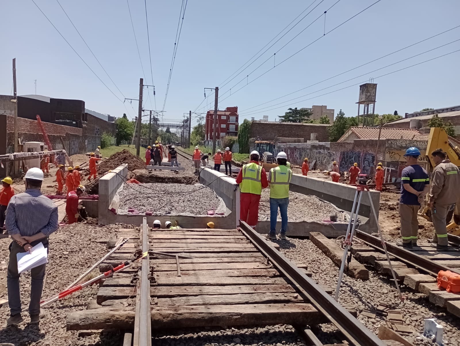 Actualmente, se concretó un 52% de la obra que contempló las tareas de pilotaje, el montaje de los puentes ferroviarios de hormigón y la colocación de un sector de vías compuesto por rieles, balasto y durmientes nuevos.