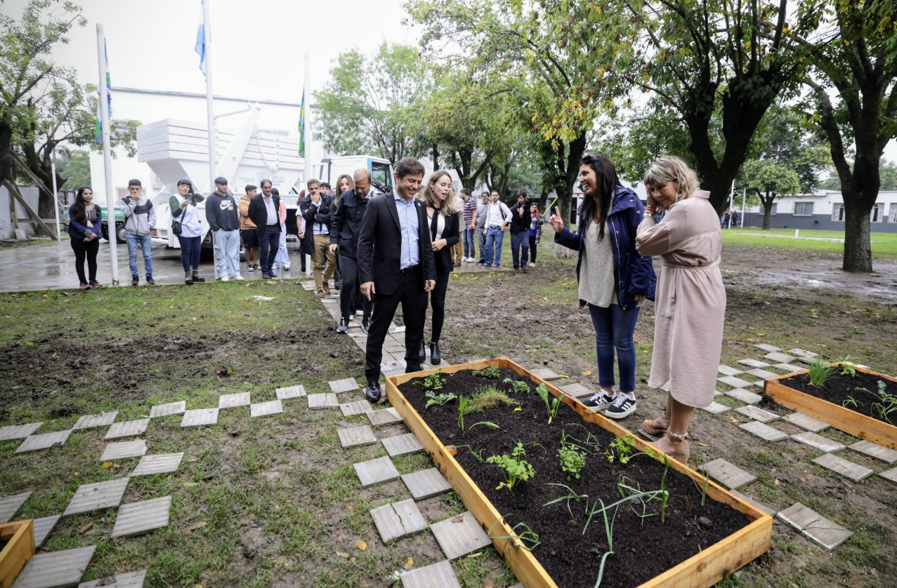 Además, Kicillof y la ministra de Ambiente, Daniela Vilar, entregaron insumos para la conformación de una huerta comunitaria dentro de la escuela secundaria y, en el marco del programa Mi Provincia Recicla, pusieron a disposición del municipio un camión de caja abierta, uno volquetero y uno furgón para fortalecer las tareas de logística en la gestión de residuos.