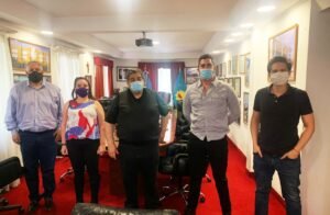 Luego las autoridades se reunieron en la secretaría privada con el Intendente Municipal Mario Ishii, del directorio de I.N.A.E.S estuvieron presentes Zaida Chmaruk, el Coordinador de Municipios Asociativos Gabriel Berrozpe, de la provincia de Buenos Aires Alan Bryden, el