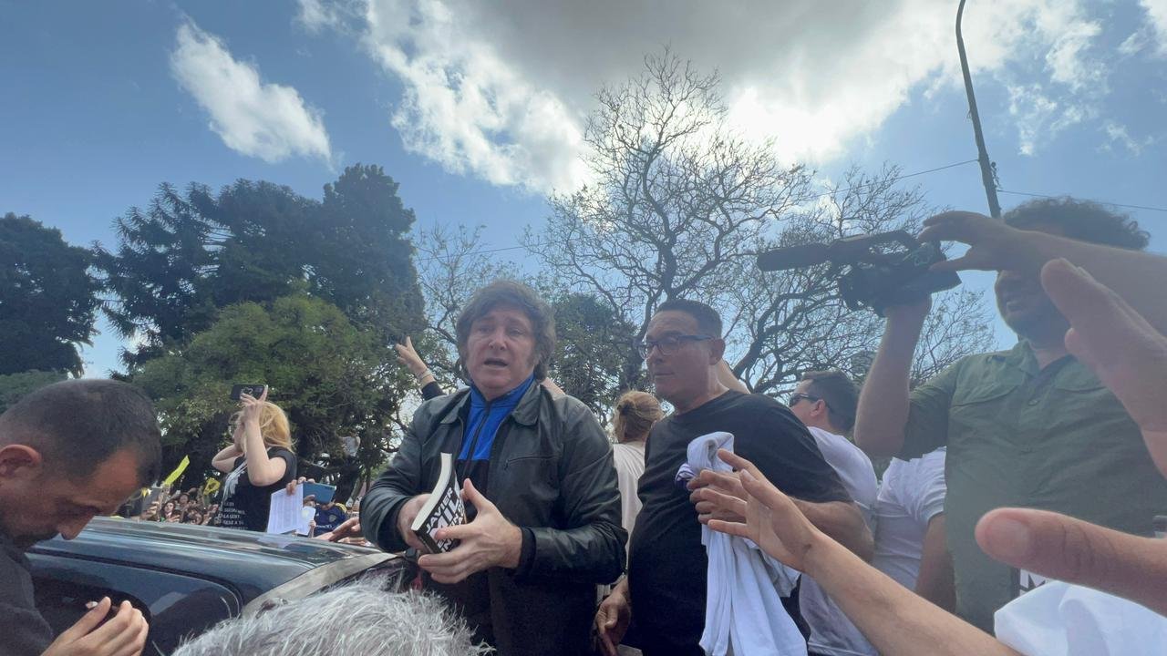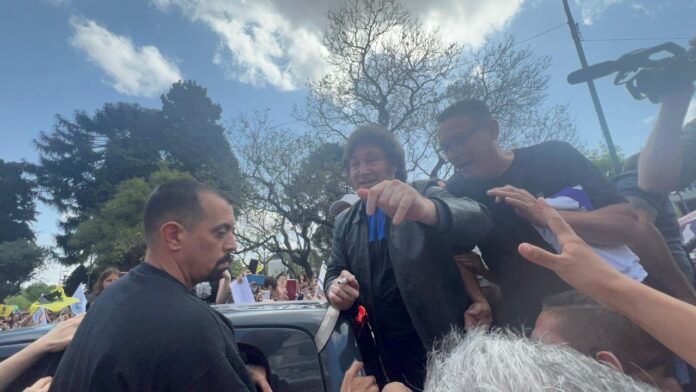 Cerca de las 15 llegó Javier Milei a bordo de un automóvil negro. El traspaso del candidato presidencial a la caja de una de las camionetas se vivió como un verdadero caos, por la desesperación de la gente de abordarlo. Sorteado el escollo, lo acompañaron en la “travesía” lomense los candidatos a intendentes Antonio Volponi (Lomas de Zamora); Emilse Ambruster (Almirante Brown) y Javier García (Lanús), entre otros. También fue de la partida el candidato a concejal lomense Fernando Iantorno.