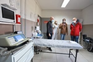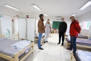 Con la presencia del diputado provincial Adrián Urreli; el jefe de Gabinete local, Diego Kravetz; y el secretario de Salud local, Gustavo Sieli, las autoridades mencionadas recorrieron en primer lugar el Centro de Camas Extrahospitalarias, destinado a la atención médica de pacientes con requerimiento de oxígeno leve. Con 24 camas y la posibilidad de llegar hasta 35, el espacio cuenta con administración de ingreso y egreso de pacientes, farmacia, baño para pacientes y baño para profesionales, dormitorio médico y shock room.