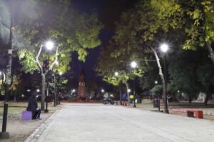 Al Oeste del distrito, se renovaron las luminarias de las plazas Belgrano, 25 de Mayo, Arias y San Martín, mientras que al Este se trabajó en las plazas Sarmiento, Villa Obrera y Ricardo Rojas. En todos los casos, se renovaron los faroles de los postes ya existentes, logrando una mayor luminosidad.