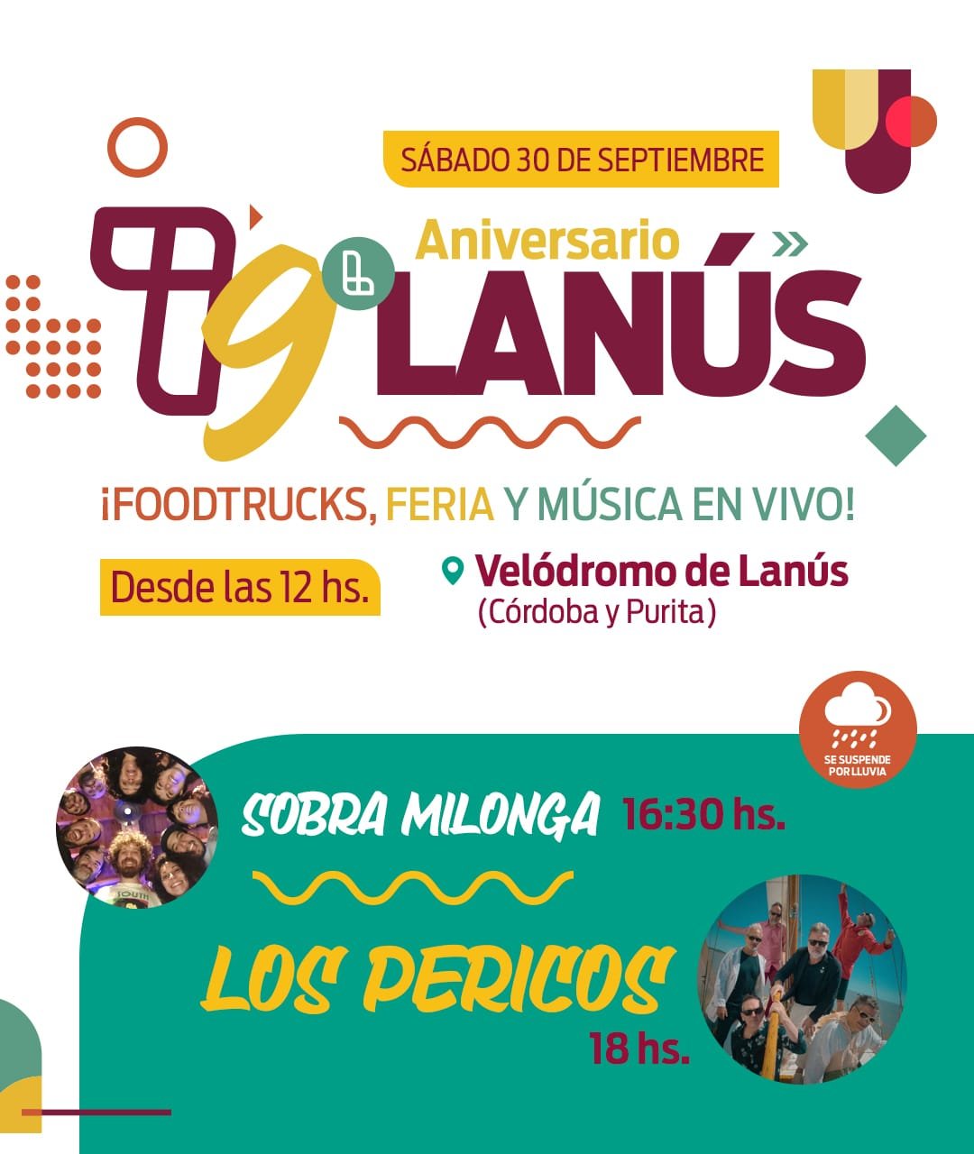 El sábado 30 de septiembre, el Municipio de Lanús celebrará el aniversario del distrito con una jornada festiva en la que habrá una feria de emprendedores, foodtrucks y recitales en vivo. Las actividades se realizarán en el Velódromo municipal situado en Córdoba y Purita, Lanús Este, a partir de las 12 horas.