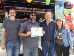 Posteriormente, en el sector gastronómico, se acercó a dar un reconocimiento con motivo del Día del Cervecero Artesanal a los emprendedores de cerveza Pujllay.