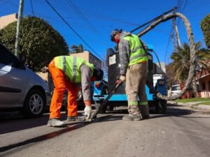 Con el permanente objetivo de recuperar y mejorar las calles del distrito, se realizan tareas de bacheo, reconstrucción de pavimentos en la zona céntrica y accesibilidad al polo industrial local.