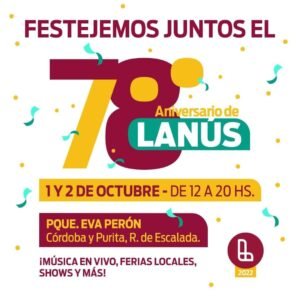 La información completa está en: https://www.lanus.gob.ar/aniversariolanus. A continuación, se detallan los días y horarios de las actividades: