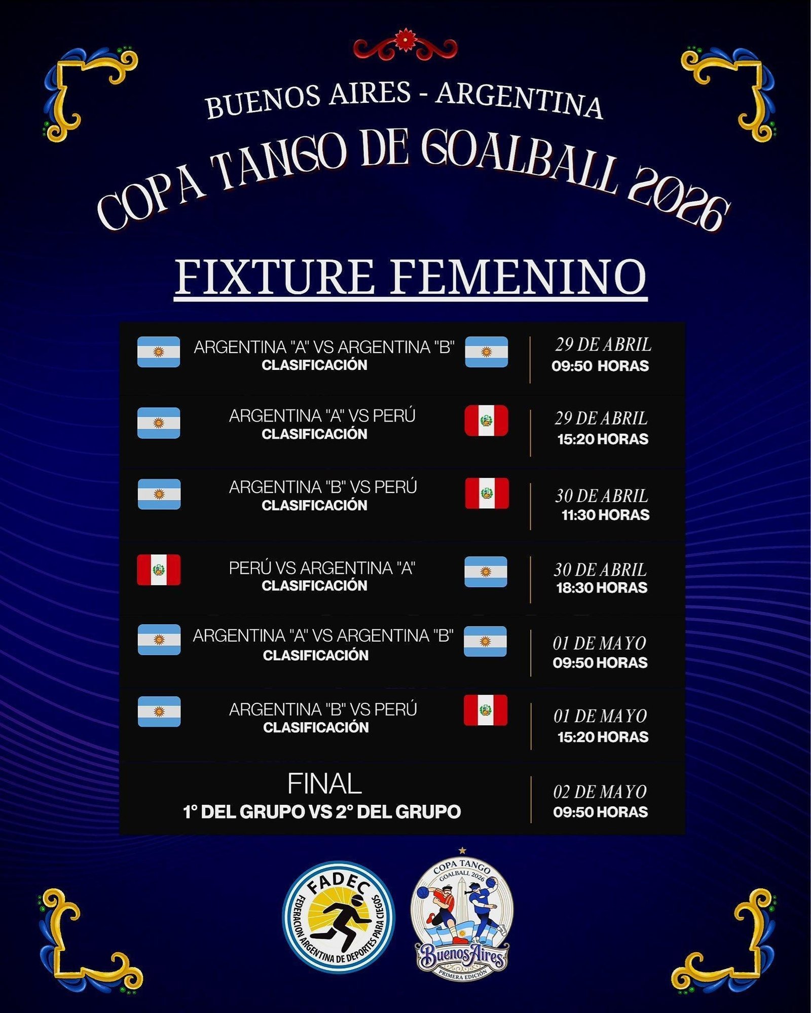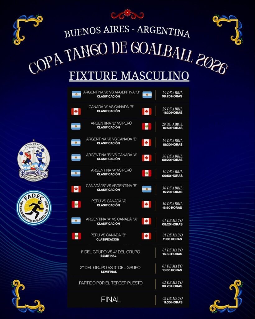 La Federación Argentina de Deportes para Ciegos (FADeC) anuncia oficialmente la realización de la primera edición de la Copa Tango de Goalball. El evento se llevará a cabo del 29 de abril al 2 de mayo en las instalaciones del Centro Nacional de Alto Rendimiento Deportivo (CeNARD), reuniendo a grandes exponentes de la disciplina en las ramas masculina y femenina del continente.