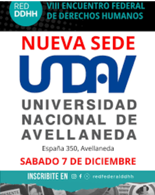 «Habrá varias comisiones de trabajo que incluyen temas como Espacios de Memoria, Juicios de Lesa Humanidad, Violencia Institucional, Trabajo, Universidad, Géneros y Diversidad y Salud Mental», señaló e informó que este encuentro está organizado por la Red Federal de DDHH y la cita arranca este 7 de diciembre desde las 9 hs en la UNDAV, Sede España 350″.