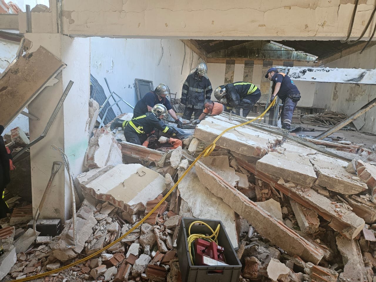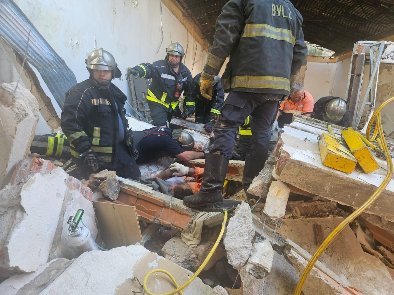 Esta mañana ocurrió un derrumbe en una obra particular de refacción de un galcón y bomberos del Cuartel de Lomas de Zamora trabajó para liberar a un obrero de 55 años que había quedado atrapado bajo una pesada loza.