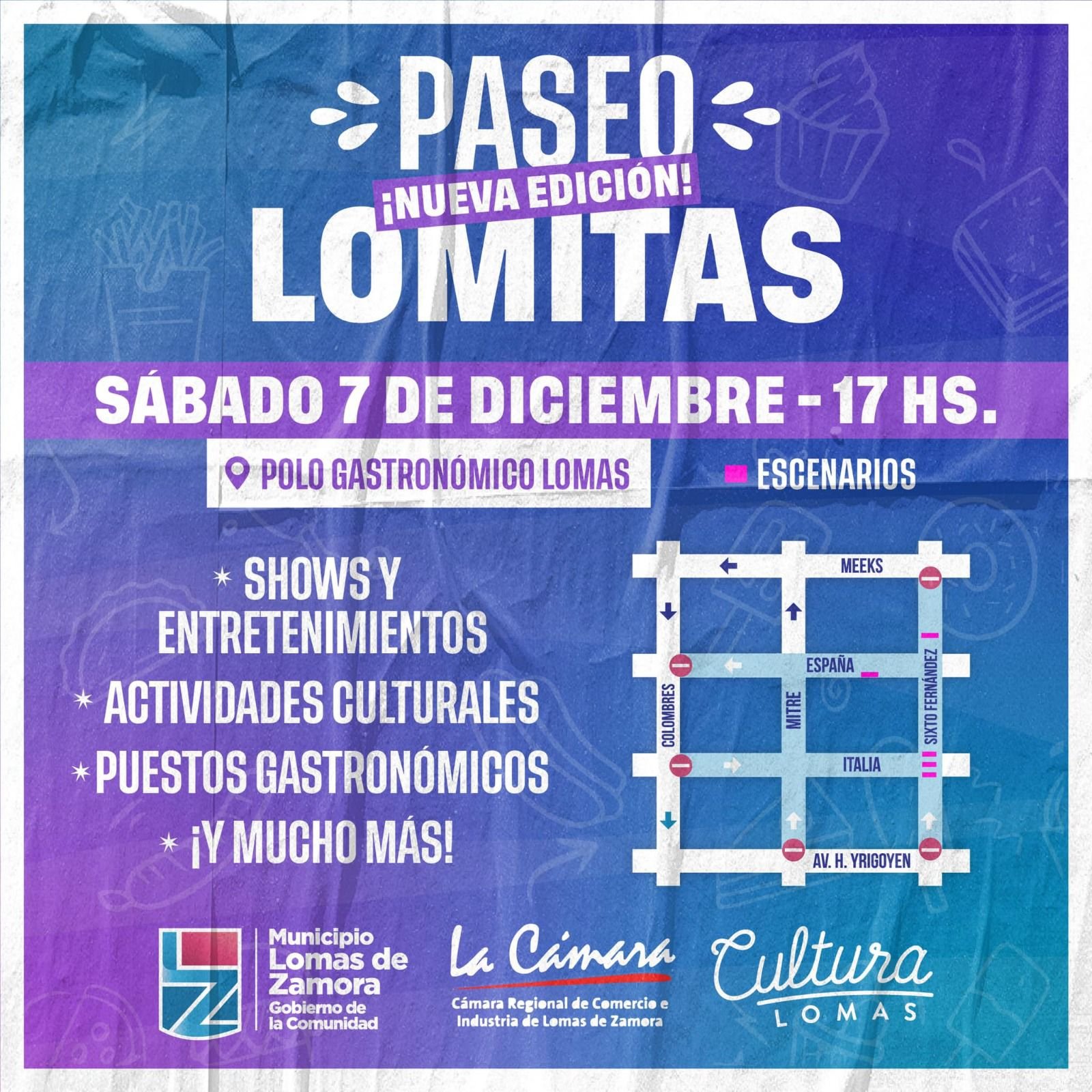 En el marco de una iniciativa llevada a cabo en conjunto entre el Municipio de Lomas de Zamora y la Cámara de Comercio local, el sábado 7 de diciembre, a partir de las 17, se desarrollará una nueva edición del “Paseo Las Lomitas”.