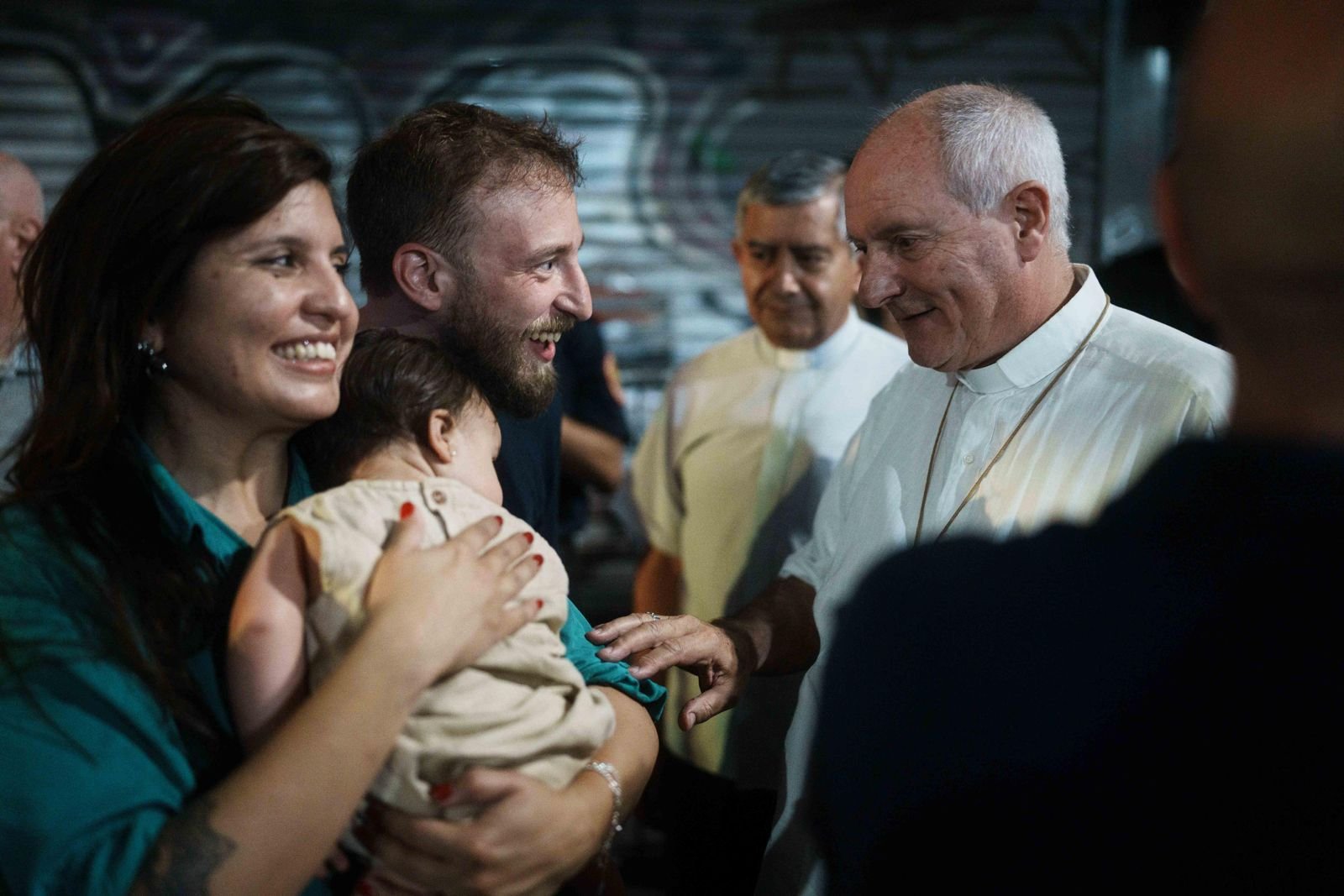 El recorrido comenzó saliendo desde Meeks y Laprida hasta el escenario central frente a la Plaza Grigera, donde el obispo monseñor Jorge Lugones dirigió una bendición a los presentes.