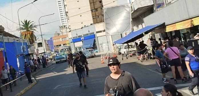 El rodaje fue advertido en la calle República Árabe Siria, entre Laprida y Gorriti. Autos antiguos, vestuario de mediados de siglo y un fuerte operativo de seguridad transformaron el paisaje habitual de la estación.