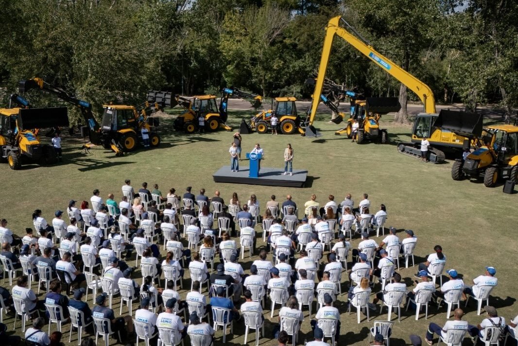 El intendente de Lomas de Zamora, Federico Otermín, junto a trabajadores y trabajadoras del programa Lomas Limpia, presentó 7 retroexcavadoras y una excavadora de largo alcance (Long Reach) de 18 metros, que se suman a la flota local, en este caso para la limpieza de arroyos y zanjones y el mantenimiento de las cuencas. De la actividad también participaron la Jefa de Gabinete, Sol Tischik, y la Secretaria General, Aldana Scillama.
