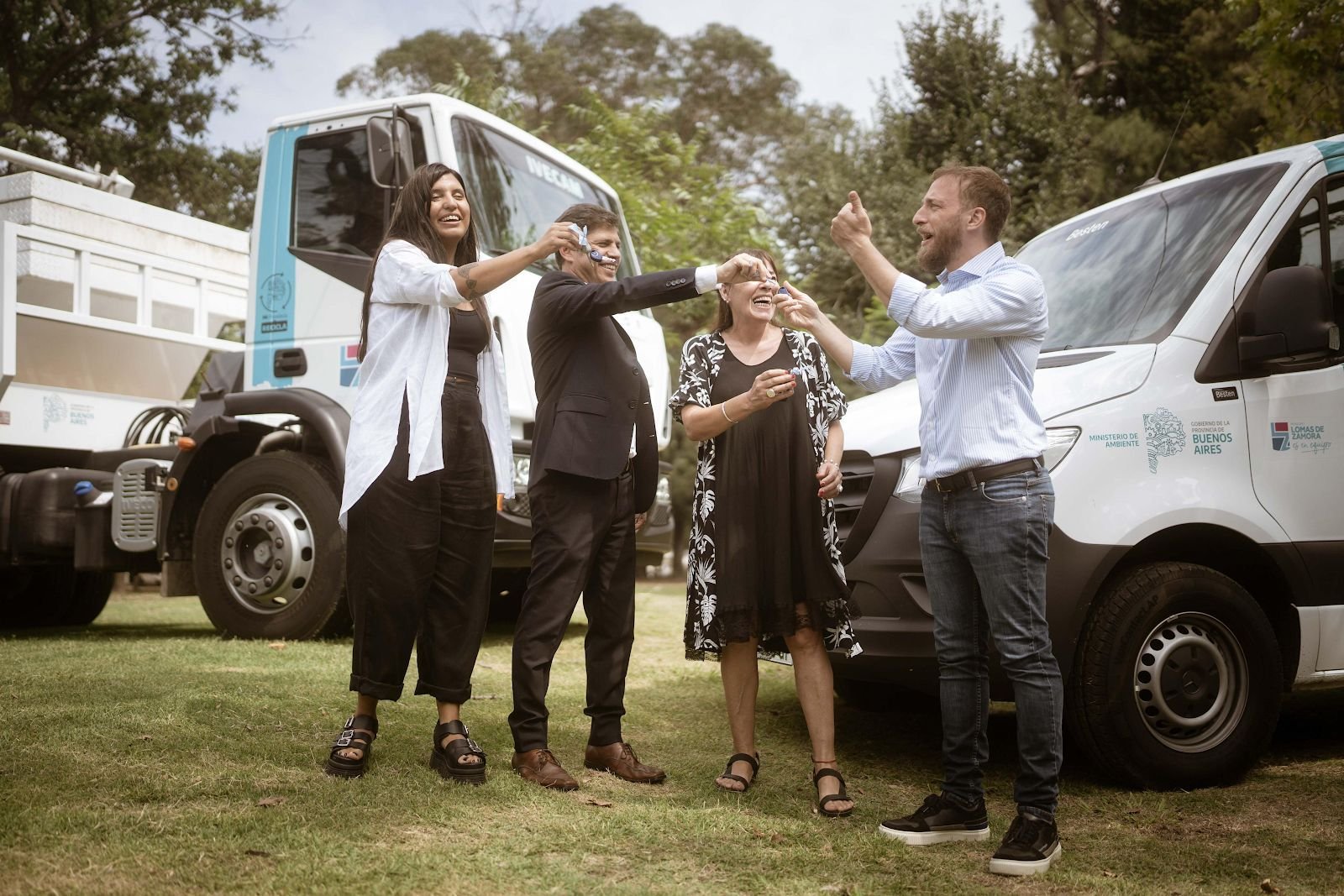 En primer lugar, Kicillof, Otermín y Vilar presentaron tres nuevos camiones, volquetero, de caja abierta y de caja cerrada, respectivamente, kits de indumentaria completos, tablets, bolsas reutilizables y otros insumos destinados a fortalecer la tarea de 16 cooperativas, así como kits de promoción ambiental para el Municipio.