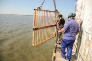 Con el objetivo de garantizar la calidad del servicio de agua potable de cara al verano, época del año donde se registra un mayor consumo, este domingo 2 de octubre personal técnico de AySA llevó a cabo la limpieza e inspección de las rejas de la torre toma de la planta planta ubicada en la localidad de Bernal.