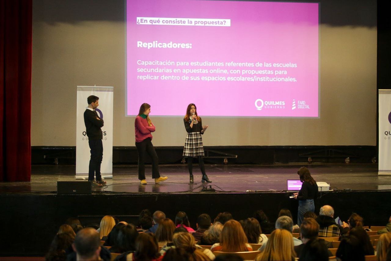 La intendenta de Quilmes, Mayra Mendoza, encabezó este viernes el lanzamiento del programa municipal de abordaje de las apuestas online en la adolescencia “No te ganes un problema”, una política pública intersectorial que se lleva adelante junto a la ONG Faro Digital y que promueve la articulación con las escuelas de la ciudad para capacitar a directivos y docentes en la temática.