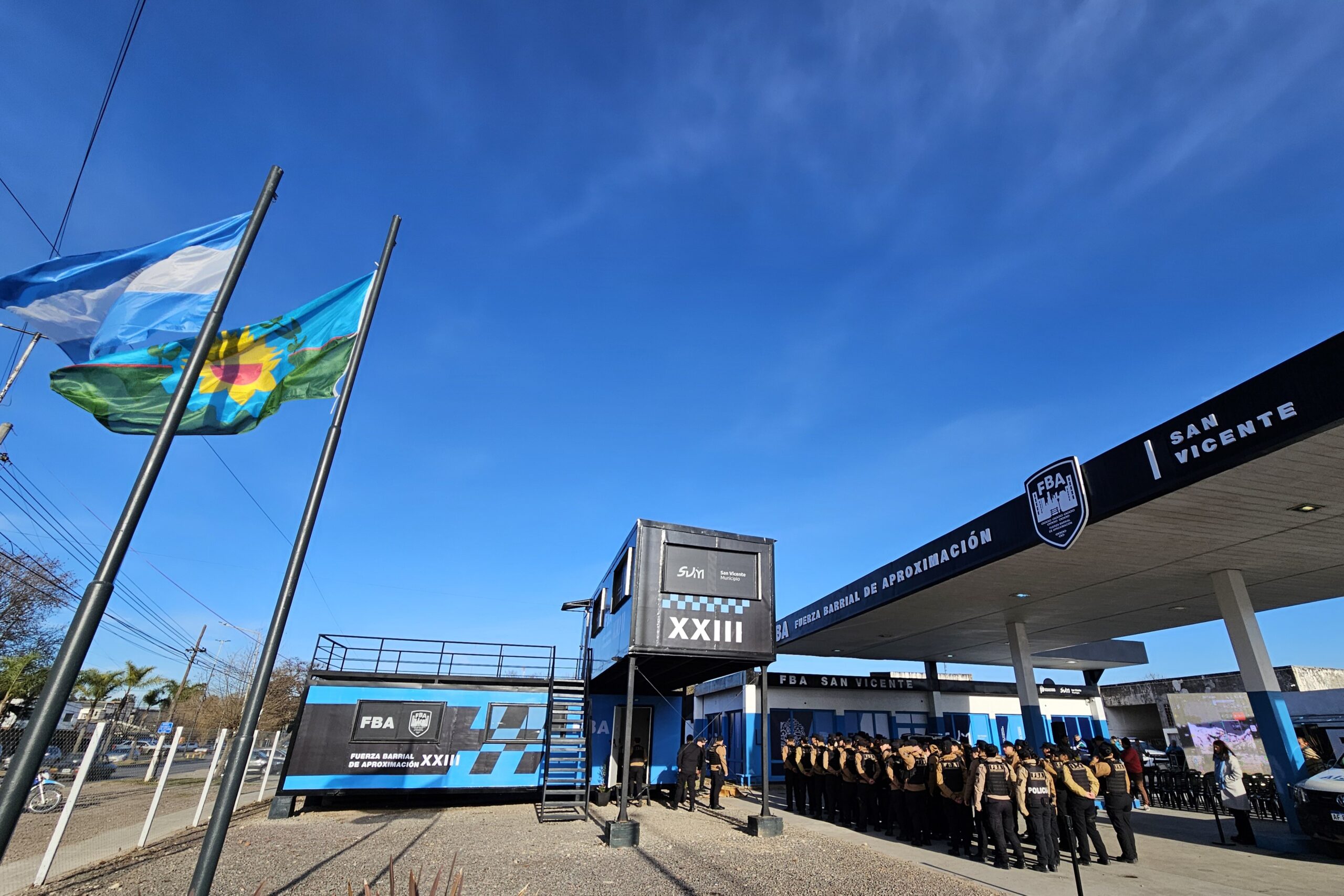 El gobernador de la provincia de Buenos Aires, Axel Kicillof, encabezó este martes la inauguración de las nuevas instalaciones de la Fuerza Barrial de Aproximación (FBA) en el municipio de San Vicente, junto al ministro de Seguridad, Javier Alonso, y el intendente local, Nicolás Mantegazza. Además, puso en funcionamiento una Subdelegación Departamental de Investigaciones del Tráfico de Drogas Ilícitas para fortalecer la lucha contra la comercialización de estupefacientes.