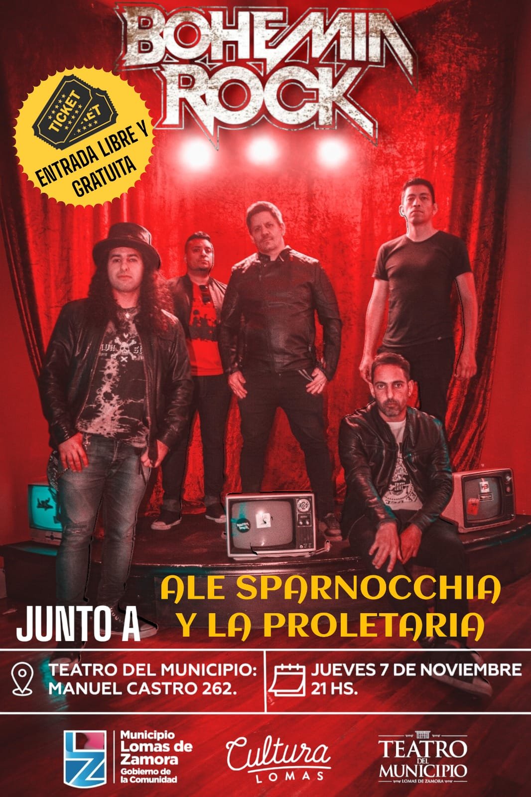 La banda oriunda de Lomas de Zamora, nacida en junio de 2006, celebra su aniversario, en esta oportunidad en el Teatro del Municipio el próximo jueves 7 de noviembre a las 21 horas en Manuel Castro 262, Lomas de Zamora. En dicha oportunidad Bohemia Rock se estará presentando junto a Ale Sparnocchia y la Proletaria. Entrada libre y gratuita.