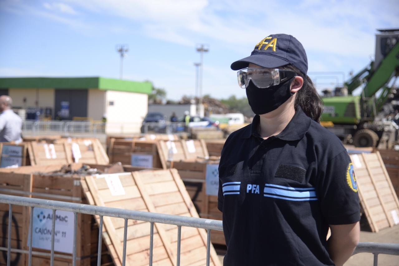 Con la presencia de la primera dama, Fabiola Yañez, las ministras de Seguridad de la Nación, Sabina Frederic y de Justicia y Derechos Humanos, Marcela Losardo, y el director ejecutivo de la Agencia Nacional de Materiales Controlados (ANMAC), Ramiro Urristi, se destruyeron 13 mil armas de fuego ilegales.