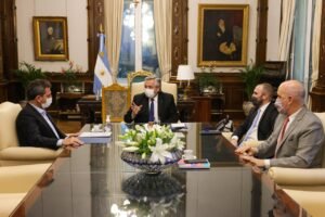 En el encuentro estuvieron presentes también el ministro de Economía, Martín Guzmán, y el secretario de Hacienda, Raúl Rigo.