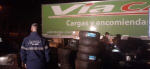 Asimismo, en otro procedimiento en Paraná, sobre la Ruta 12, cercano a La Paz, agentes aduaneros secuestraron, anoche con la colaboración de Gendarmería, 287 cubiertas de vehículos de origen extranjero sin aval Aduanero, al revisar un camión de la empresa de transporte de encomiendas de correo Vía Cargo .