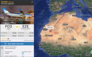 La aeronave Airbus 330-200 matrícula LV-GIF, especialmente acondicionado para funcionar como transporte de carga, despegó con el número de vuelo AR1061 del aeropuerto internacional de Sheremetievo a las 2.08 hora argentina (las 8.08 de Moscú) y aterrizó en el aeropuerto de Fiumicino en la capital italiana a las 5.29 hora argentina (las 10.29 de Italia).