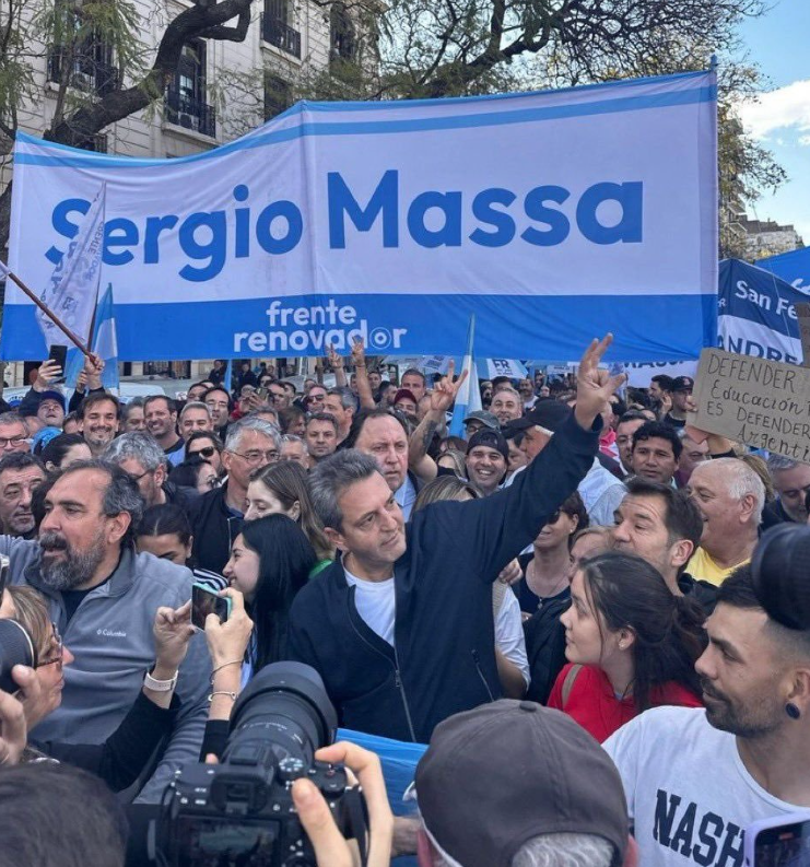 Sergio Massa también se sumó a la protesta. “La importancia de la marcha es acompañar a los chicos que vienen a defender su futuro, yo no soy protagonista, son ellos”, dijo el líder del Frente Renovador, caminando entre la multitud que se dirige hacia el Congreso en defensa del financiamiento a las universidades públicas.