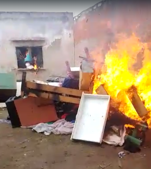 Una vez allí, algunos de ellos aprovecharon la ocasión para prender fuego el inmueble, en el que también funcionaba como taller, por lo que las personas que allí trabajaban trataron de retirar muebles y otros objetos de valor antes de que fueran alcanzados por las llamas.