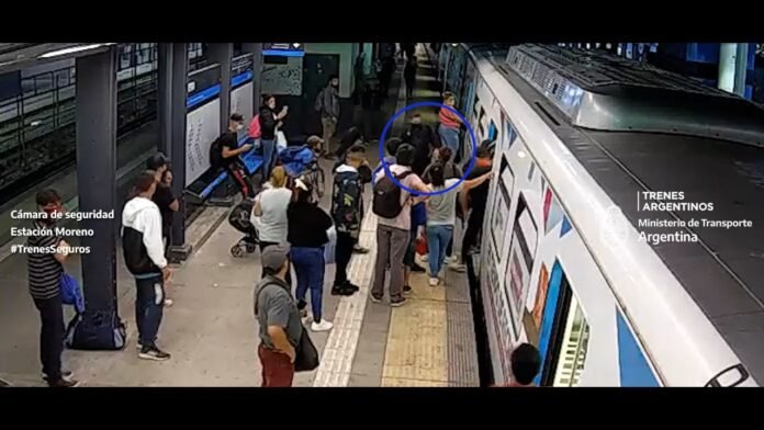 Un hombre que se encontraba próximo a la puerta del coche 6 de un tren que se dirigía a Moreno, le arrebató el teléfono a una pasajera e intentó escapar antes que la formación reanudara la marcha.