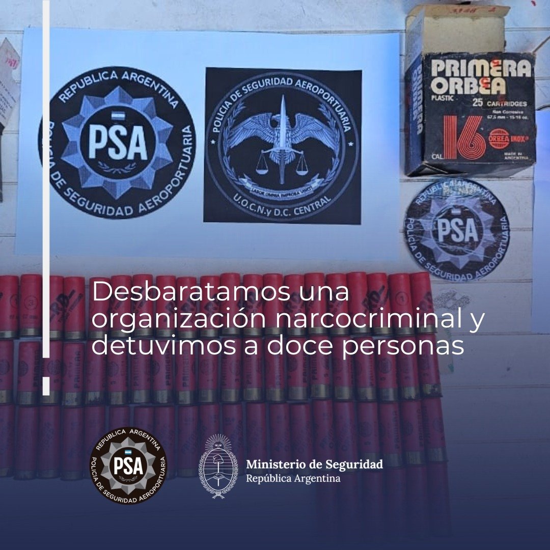 Como parte de la lucha contra la narcocriminalidad que conduce el Ministerio de Seguridad de la Nación, la Policía de Seguridad Aeroportuaria desarticuló una peligrosa organización narcocriminal, en 24 allanamientos en el AMBA.