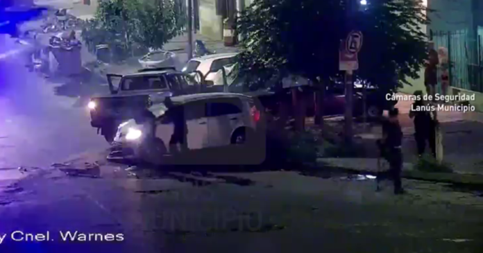 Tras advertir el desplazamiento sospechoso del rodado, un rodado marca Volkswagen modelo UP blanco y tres ocupantes en su interior, una unidad policial comenzó una persecución por las calles de Villa Diamante, en Lanús Oeste que concluyó tras una colisión con otro patrullero en la intersección de Coronel Warnes y Coronel Osorio.
