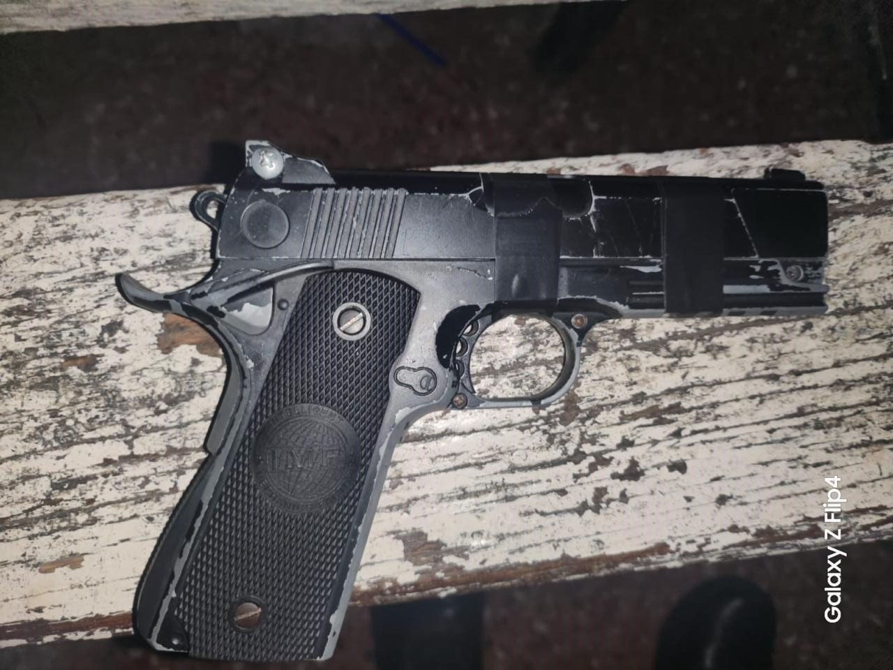 De esta forma quedaron detenidos dos sujetos de 19 y 20 años, quienes portaban una réplica metálica de arma de fuego.