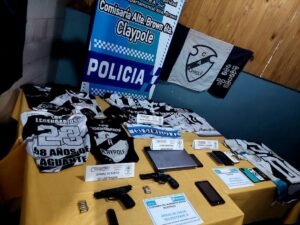 A raíz de distintos alertas y amenazas efectuadas por facciones internas de la barrabrava de Claypole, que podría desencadenar un enfrentamiento en el partido de mañana sábado, efectivos obtuvieron la orden de allanamientos puntuales que se concertaron anoche, en domicilios de líderes de facciones de Claypole denominadas «Los Legendarios», «La banda de Pepe» y «Los Gemelos X2», lugares donde se hallaron dos armas y diversos elementos.