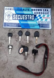 En el lugar se procedió al secuestro de cinco motocicletas marca Honda tornado blanca y negra; Motomel S-3 negra; Honda CG 150cc. Titán; Honda Elite blanca y Motomel todas con número de motor y chasis suprimidos; ademas de autopartes de varios motovehículos, un bolso de PEDIDOS YA, siete llaves de ignición y diez frascos de vidrio con Marihuana con un peso de 226.8 g.