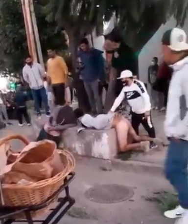En un video se puede ver a uno de los delincuentes arrodillado y sin sus pantalones; el otro mostró mayor resistencia ante la reacción de los transeúntes frente al hecho de inseguridad.