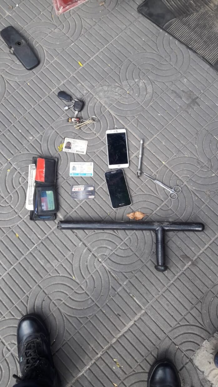 En ese momento, efectivos detuvieron a sus ocupantes de 32 y 36 años y se les incautó tres ruedas, dos celulares y una tonfa -garrote policial- sin numero de serie.