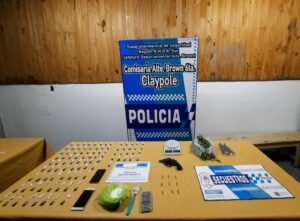 Tras tareas de investigaciones, pesquisas corroboraron el ilícito de ventas de drogas identificando a los autores de las maniobras, y concretaron un allanamiento en la calle Venancio Flores casi esquina Rawson de Claypole, Almirante Brown, donde se detuvo a un hombre y se secuestraron 94 envoltorios de cocaína preparados para la venta, una planta de marihuana, cogollos de la misma sustancia, dos balanzas de precisión, una bolsa con elemento de corte, dos teléfonos celulares con los que realizaban las ventas, un revolver calibre 22 con nueve 9 cartuchos intactos sin numeración.