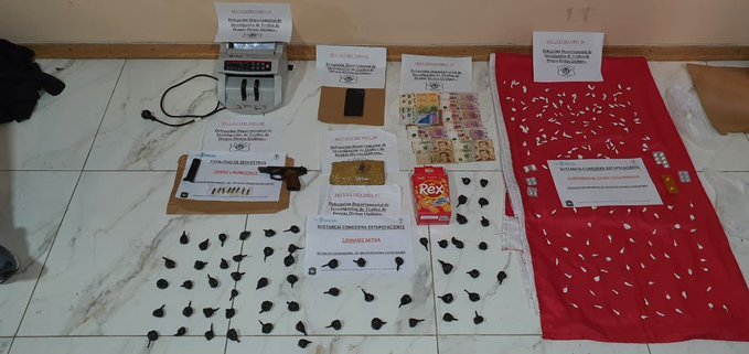 Los investigadores indicaron que como resultado de los operativos se secuestraron 454 envoltorios por un peso de 66.7 gramos de cocaína, 101 dosis y cuatro trozos compactos con un total de 1.354 gramos de marihuana, 86.645 pesos y 49 dólares, siete teléfonos celulares y seis vehículos.