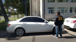 El joven fue apresado cuando un efectivo policial logró introducirse del lado del acompañante del vehículo marca Mercedes Benz que había abordado Lucano instantes previos.