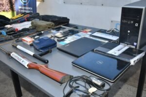 Además, incautaron un inhibidor de señal, un handy, ocho teléfonos celulares, cinco barretas, herramientas para cortar candados, dos juegos de esposas, dos tablets, vestimenta de la Policía y de seguridad privada y 39.900 pesos, agregaron los voceros.