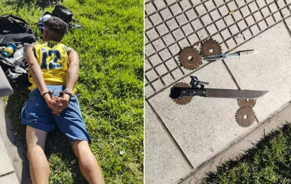 Este jueves por la tarde, un hombre fue detenido por la Policía Federal al intentar ingresar con un machete de 20 centímetros y 5 discos de corte. Fue esposado en la puerta y será trasladado a la comisaría.