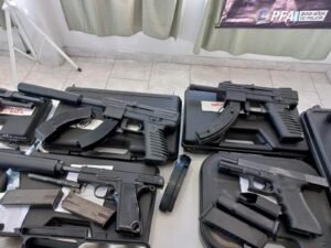 Allí, los efectivos federales hallaron 19 armas largas entre fusiles, rifles y escopetas, pistolas ametralladoras y revólveres; cuatro credenciales que lo identificaban como fiscal Federal y abogado; tres títulos universitarios apócrifos del Colegio Público de Abogados de la ciudad y 44 tarjetas también falsas de la Agencia Nacional de Materiales Controlados (ANMaC), entre ellas para la tenencia de armas como legítimo usuario y para la adquisición de municiones.
