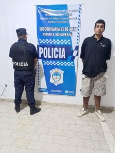 Los dos hombres, ambos mayores de edad, fueron detenidos en la intersección de las calles Nuestras Malvinas y 25 de Mayo. Uno de ellos presentaba antecedentes por robo calificado por ser efectuado en banda y con la participación de un menor de edad.