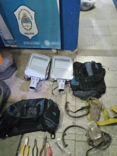 En su poder secuestraron varias luces con tecnología Led correspondientes a las nuevas luminarias municipales, y también diversos elementos como escaladores y herramientas para el desarme.