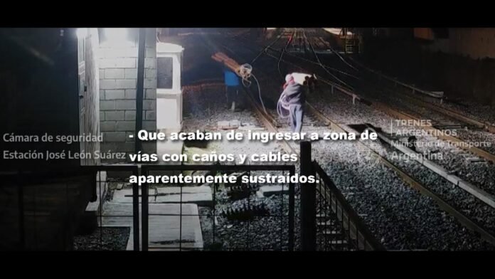 Ocurrió a eso de las 23 en torno a la estación José León Suárez de la Línea Mitre. Un operador del Centro de Monitoreo de Trenes Argentinos detecta, a través de las cámaras de seguridad, que dos hombres estaban circulando por la cabina de señales de la estación cargando cables y caños.