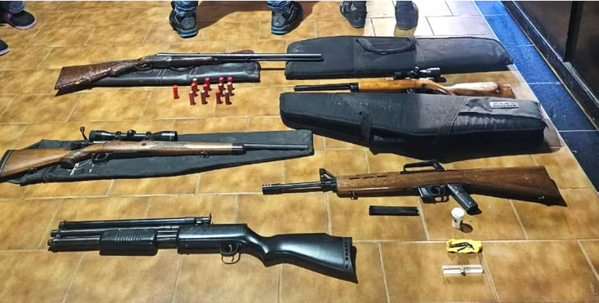 En otras cuevas de la banda se encontraron sus armas, como tres carabinas y dos escopetas, una decena de patentes, municiones varias, amoladoras, soldadoras y repuestos varios como cinco baterías, cinco caños de escape y ocho ruedas completas.