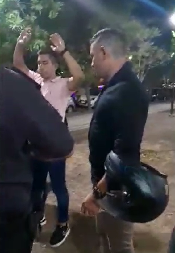 Los oficiales de motorizada detectan que las dos acompañantes no llevaban el casco correspondiente para circular y les informan que los custodiaran hasta el operativo vehicular que se encontraba a dos cuadras del lugar. Es entonces cuando los individuos apagan y traban sus motos, negándose a concurrir al control.