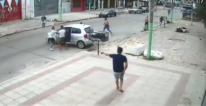 Varios de los chicos salieron a buscar al auto, que amagó a irse pero, por un desperfecto mecánico, quedó detenido. Lo sacaron a los golpes, según se pudo ver en las filmaciones de las cámaras de seguridad.