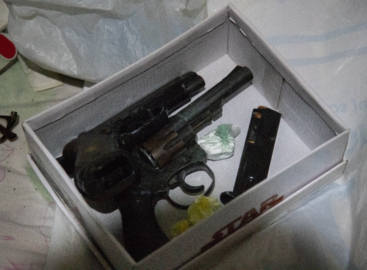 En el primer objetivo, la policía ingresó a una vivienda del Pasaje Malvinas 379, de Lanús, donde secuestró un revolver calibre 32 largo Doberman, una pistola Browning Calibre 380, dos cargadores de pistola 9mm, 10 municiones calibre 9 mm y 23 dosis de cocaína, que hacían un total de 11 gramos. Allí se detuvo a Juan Reyes Retamar, de 63 años.